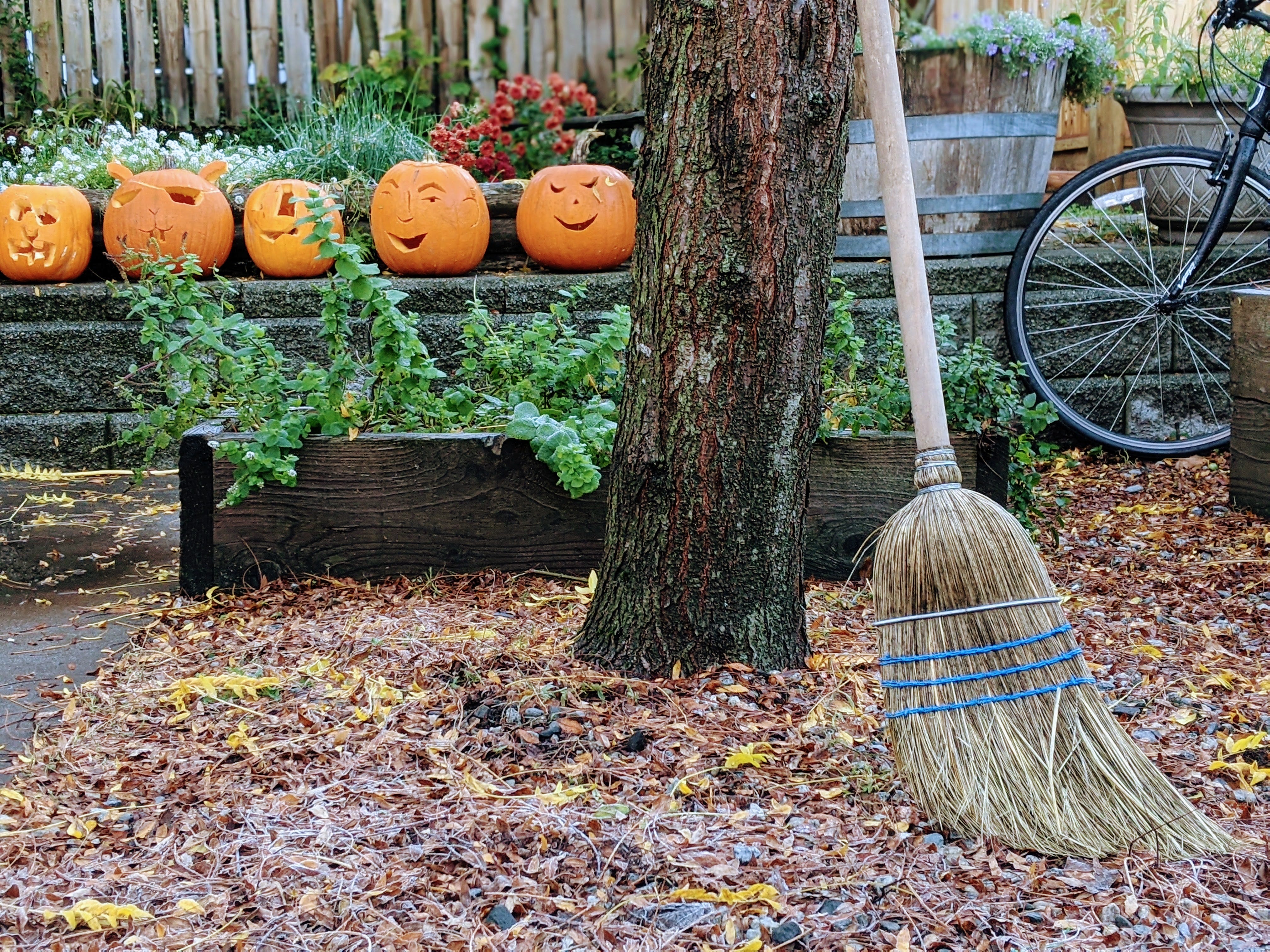 We finished carving our pumpkins, placed tea lights inside, and set them down on the freshly swept patio to admire.