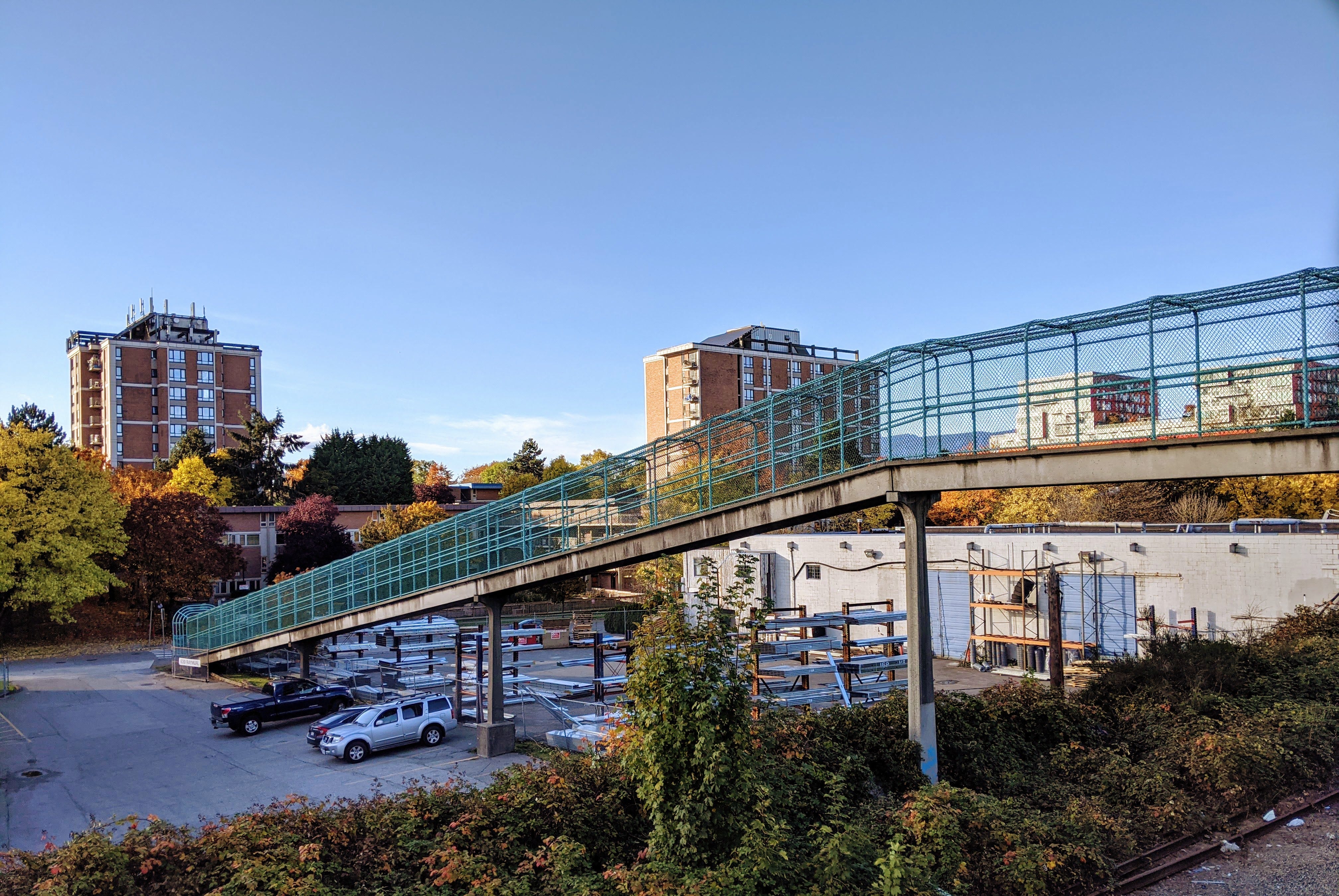 On Friday afternoon, I was reminded once again of the fruit of availability. It was one of those windy and sunny (sun-swept?) fall days, and I headed out for a walk, rather aimlessly. As I approached the train tracks that cut diagonally across East Van, I turned down the street with a pedestrian overpass—a conspicuous turquoise chain-link structure. I walked up the ramp, then paused in the middle, standing directly above the tracks. I looked at the garbage below, cut through by a path for a train. I looked up—the North Shore mountains. I kept walking.